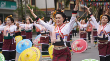 4月14日,在斯洛文尼亚皮兰市,演员表演彝族舞蹈《云水伊人》。