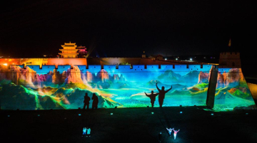 5月4日,游客在798艺术区内参观造梦现场电影艺术展。