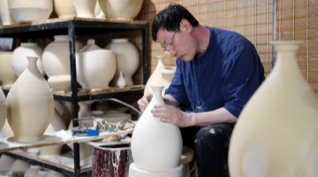 参赛选手在陶瓷文物修复师赛区进行比赛(7月4日摄)。