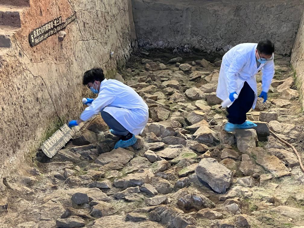 最近,俞元盛完成了“土体渗漏通道探测”的研究课题。他告诉记者,土体由粗细不等的土壤颗粒组成,渗漏的流水会先把细颗粒带走,从而导致土体空隙越来越大,最终会影响遗址本体的稳定。