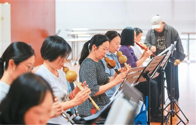 市民在河南省三门峡市文化馆“天鹅夜校”学习葫芦丝。孙猛摄(人民图片)