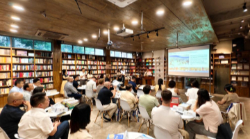 苏峪口瓷窑址考古队执行领队柴平平(左二)在考古队文物库房内向前来考察的专家介绍出土瓷器情况(10月13日摄)。