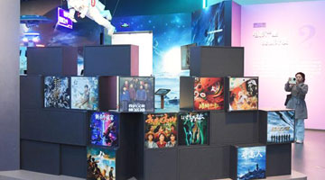 工作人员在苏峪口瓷窑址考古队文物库房内展示发掘出土的带有刻划花纹的瓷器残片(10月13日摄)。