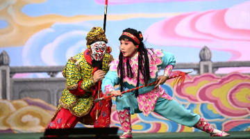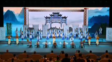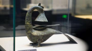 一位工作人员在苏峪口瓷窑址考古队文物库房内展示遗址出土的带有“官”字款的匣钵残片(10月13日摄)。
