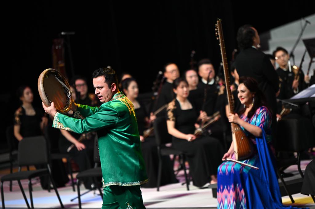 10月16日,手鼓演奏家帕尔哈提·亚森在第十一届丝绸之路国际艺术节开幕式上表演。新华社记者 李一博 摄