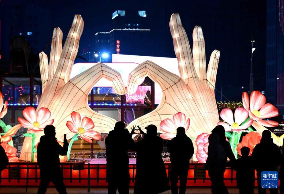 2月11日,市民在甘肃省定西市安定区新时代广场观赏传统手工花灯展览。