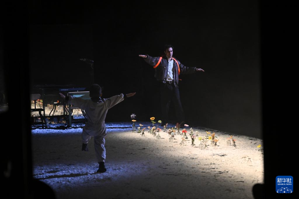 3月27日,演员薛飞、凡清(右)在《小王子》中演出。