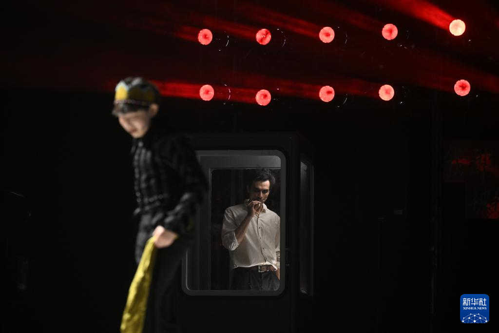 3月27日,演员马克·普拉斯、中方导演张瑞、演员金珍禾、李一辰(从左至右)在演出开始前交流。