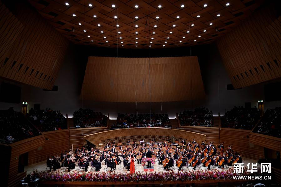 12月31日拍摄的“唱支山歌给党听 2021上海新年音乐会”。当日,指挥家余隆执棒由上海交响乐团、中国爱乐乐团及广州交响乐团组成的联合乐团,在上海交响乐团音乐厅为国内外观众奉上“唱支山歌给党听 2021上海新年音乐会”,演绎多部见证时代巨变的原创红色经典。新华社记者 任珑 摄