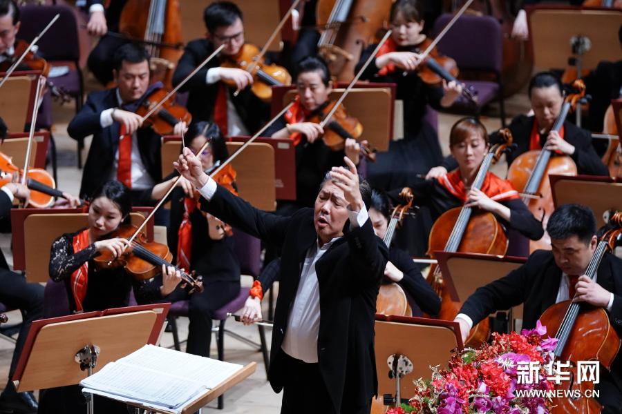 12月31日,指挥家余隆在2021上海新年音乐会上指挥。当日,指挥家余隆执棒由上海交响乐团、中国爱乐乐团及广州交响乐团组成的联合乐团,在上海交响乐团音乐厅为国内外观众奉上“唱支山歌给党听 2021上海新年音乐会”,演绎多部见证时代巨变的原创红色经典。新华社记者 任珑 摄