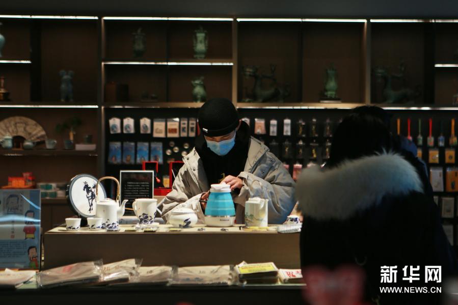 参观者在河南博物院挑选文创产品(1月2日摄)。新华社记者 许雅楠 摄