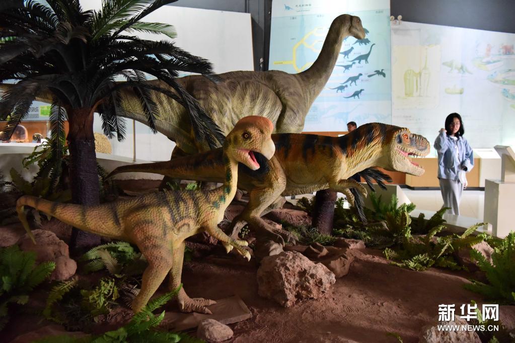 5月3日,游客在河南汝阳恐龙国家地质公园展厅参观。