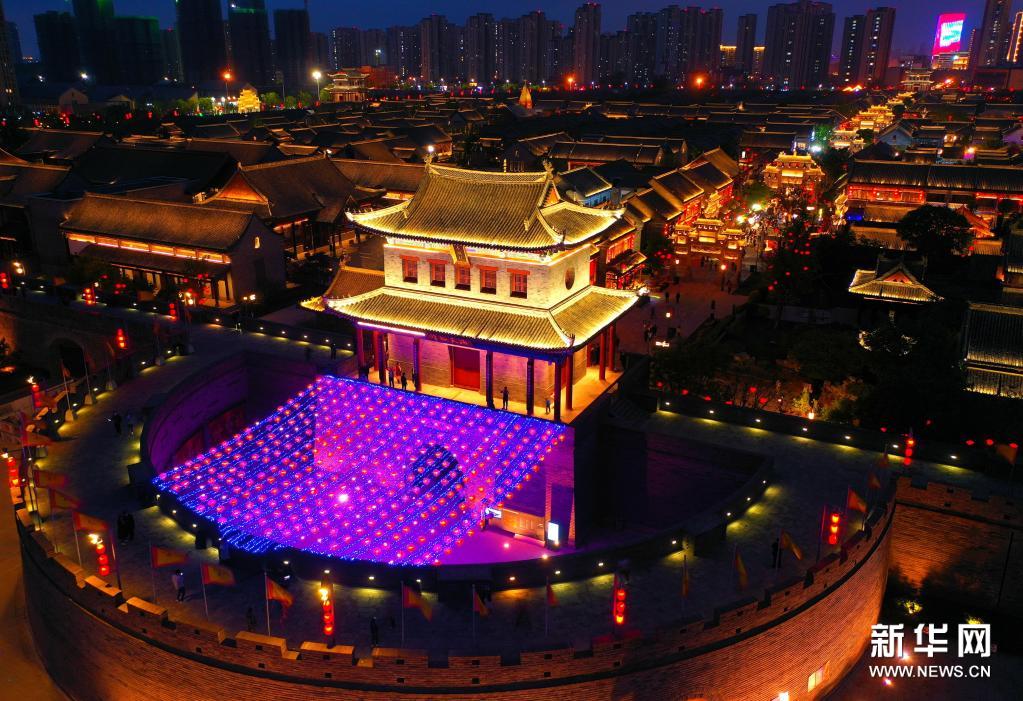 5月3日晚,游客在即墨古城游览(无人机照片)。新华社发(梁孝鹏 摄)