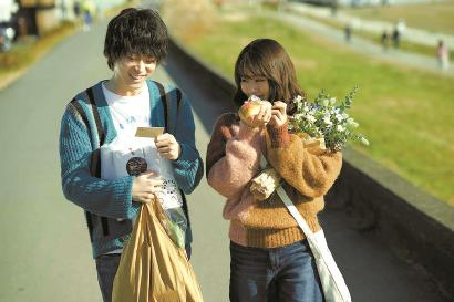 《花束》曾在受疫情影响的影院低迷时期,蝉联六周日本电影票房冠军,获得人气、口碑双高。长达两个多小时的影片,依照男女主角山音麦和八谷绢一见钟情、相见甚欢到渐生厌倦、分手告别的爱情电影常见套路,以“编年体”的模式,通过不断出现的内心独白,讲述了两人从大学到步入社会看似“平平无奇”的五年情感生活。