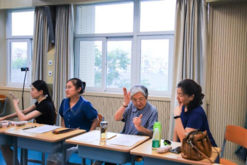为保证译文的准确明了,南京聋校多次组织一线教师、资深专家和社会聋人一起参加研讨。讨论会的一张照片上,与会者坐成一圈,原副校长朱菊玲留齐耳短发,穿一件靛蓝色上衣,两只手各比出一个“山”手形,聚精会神地与年轻教师一起琢磨手语动作。