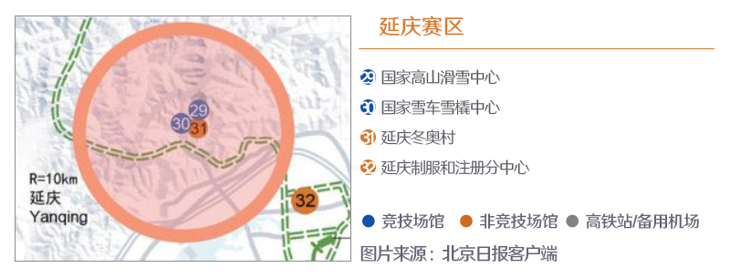 延庆赛区将进行3个大项(高山滑雪、雪车、雪橇)、4个分项(高山滑雪、雪车、钢架雪车、雪橇)、21个小项的比赛。