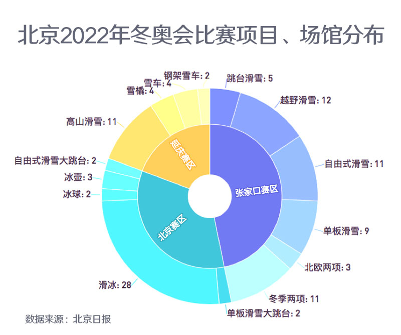 北京冬奥会设有北京、延庆和张家口三个赛区,共计划使用25个场馆,其中直接用于赛事的竞赛场馆12个。