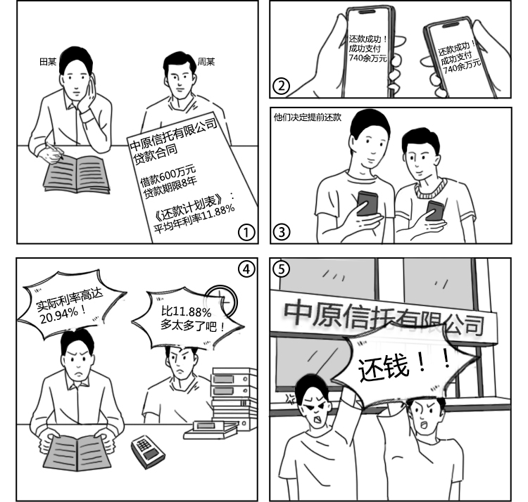 田某、周某认为实际利率高达20.94%,远高于合同约定的11.88%,且中原信托在借款合同履行过程中从未披露过实际利率,遂向法院提起诉讼,要求中原信托退还多收的利息88万余元以及占用该资金的利息损失。