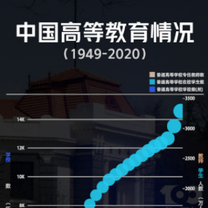 新中国成立之初,我国仅有普通高等学校 205 所,经过数十年发展,尤其是1999年中国高等院校开始实行扩大招生之后,高等院校的数量、招生人数、在校生人数、毕业生人数以及学校的规模都有了爆炸式的增长。