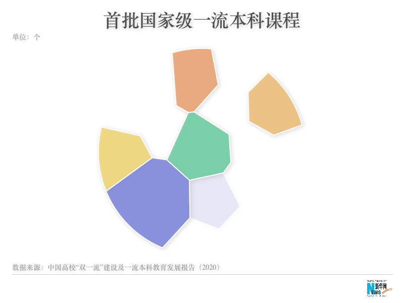 2020年11月, 《教育部关于公布首批国家级一流本科课程认定结果的通知》发布。经专家评议与公示, 认定5118门课程为首批国家级一流本科课程。其中,线上一流课程1875门,虚拟仿真实验教学一流课程728门, 线下一流课程1463门,线上线下混合式一流课程868门,社会实践一流课程184门。