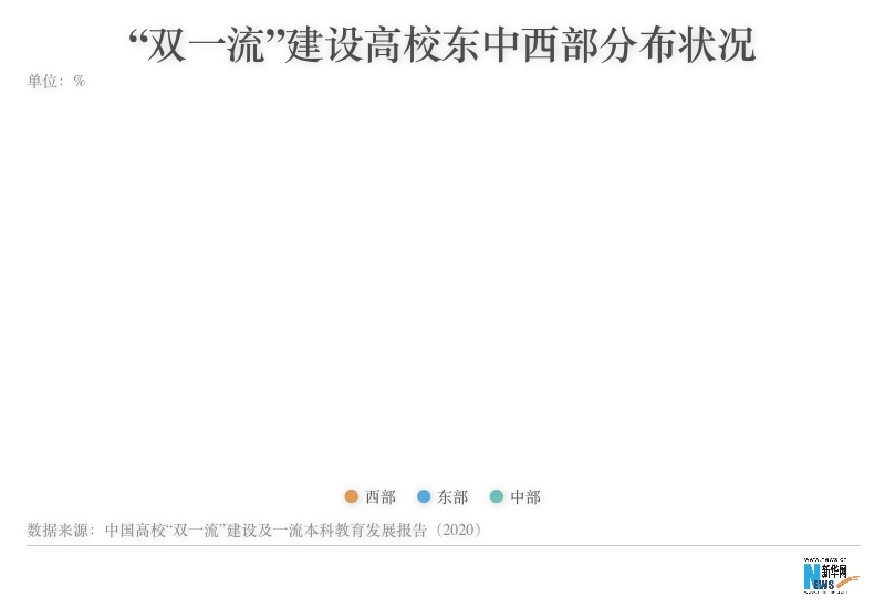 高等教育区域发展不平衡不充分,东中西部“双一流”建设存在不平衡的现象。在最新的42所“双一流”建设高校名单中,东部为24所,中部为9所,西部为9所,呈现东部密集、中西部稀疏的格局。