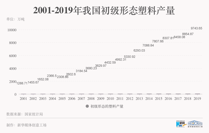 我国是全球塑料生产和消费第一大国,2019年我国初级形态塑料产量为9743.65万吨。目前,我国每年生产塑料消费制品已突破6000万吨。如何减少塑料对于环境的污染,是我们面临的重要问题。