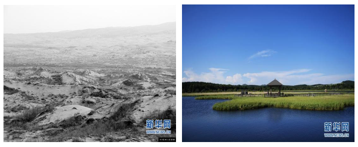因过度采伐,20世纪50年代塞罕坝土地贫瘠、植被破坏严重,曾经水草丰沛、森林茂密的塞罕坝退化为一片荒丘。从1962年起,一代又一代塞罕坝务林人在自然条件极端恶劣的高寒荒漠中坚持植树造林,用汗水浇灌出绿波涌动的百万亩人工林海。