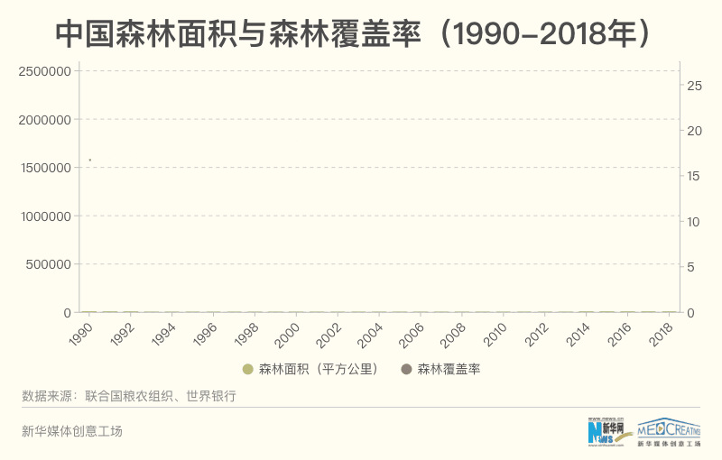 新中国成立之初,百废待兴,森林覆盖率仅有8.6%,森林面积仅有8000多万公顷。经过多年坚持不懈植树造林,我国森林面积2018年已达到2162190平方公里。