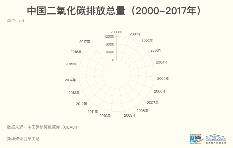 根据中国碳核算数据库(CEADs)的统计,我国二氧化碳年排放总量从2000年的3214.1亿吨增加到2017年的9729.1亿吨,生态环境面临着较大挑战。