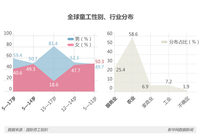 童工问题非常复杂,所有关乎教育、青年就业、劳动力市场治理、立法和执法、贫困和脆弱群体的政策措施,都对减少童工的供求发挥着重要的作用。根据调查发现,童工在农业部门最为集中(58.6%),其次是服务业(25.4%)。相对于男性童工,低年龄童工中女性更为普遍。