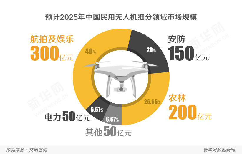 我国的无人机行业也在快速发展,近年来国内小型民用无人机市场规模增速达到50%以上,到2025年,国内无人机市场总规模将达到750亿。无人机这块“大蛋糕”也吸引了部分互联网企业和媒体的加入,以新华网无人机队为例,自2015年成立以来,新华网在通过无人机丰富报道内容的同时,也在培养专业的航拍以及飞手团队,努力开启中国网络新闻报道的“飞行模式”。【点击进入新华网无人机频道】