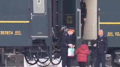 秀我中国丨冰天雪地温情一幕:绿皮火车静静等待3名旅客