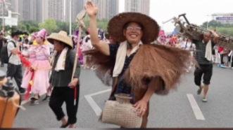 秀我中国丨农民扛着农具来走秀 自信的步伐真有范儿