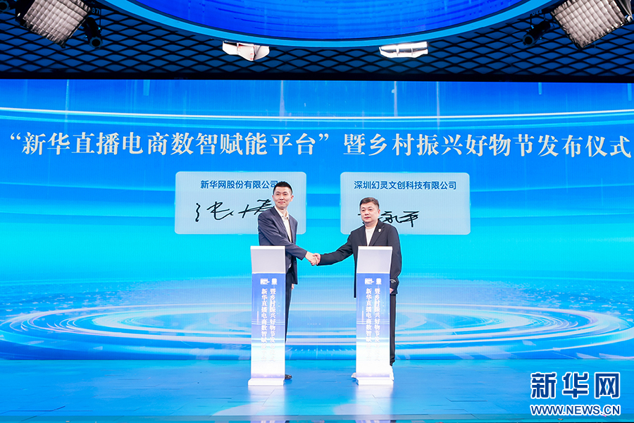 新华炫闻(北京)移动传媒科技有限公司常务副总裁、新华网数字经济事业中心负责人张涛与深圳幻灵文创科技有限公司CEO李永平代表完成签约。新华网发