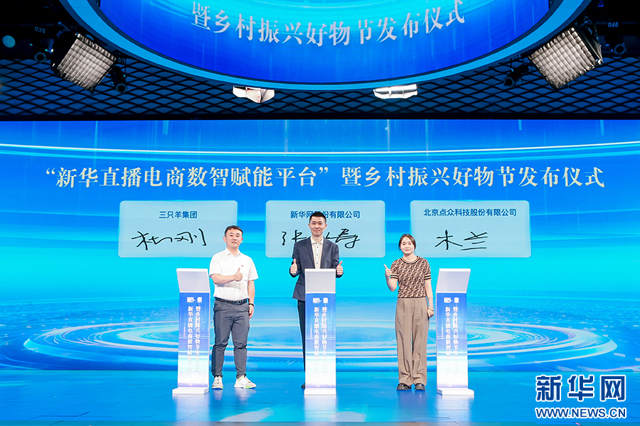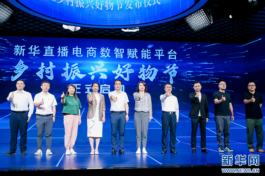 现场由新华网首席运营官、新华炫闻(北京)移动传媒科技有限公司董事长孙巍,吉林省志愿服务联合会秘书长王珊,中国国际贸易促进委员会厦门市委员会党组书记、会长柯碧如,深圳幻灵文创科技有限公司总裁刘志新,三只羊集团CEO杜刚,新野县人民政府副县长杨勇,西城区菜篮子联合会秘书长高云,无忧传媒集团有限公司战略中心商务总监耿冠男,杭州遥望网络科技有限公司城市业务拓展资深总监王玉祥,淘天集团淘宝直播公共事务总监李鹏共同启动“乡村振兴好物节”。新华网发