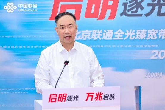 北京市通信管理局党组书记、局长苏少林在致辞中肯定了北京联通在推动信息化建设方面做出的贡献。他指出,北京信息通信行业坚持以习近平新时代中国特色社会主义思想为指导,坚定不移地强化新型工业化的数字基石。北京市为建成“光网之都,万兆之城”,计划通过三年时间,率先开展一系列F5G-A万兆光网技术创新与应用试点,推动网络升级、深化应用普及、提升用户感知。北京联通在一年的时间里完成了平谷村播基地的揭牌,完成50G PON万兆体验测评,今天又打造了“北京联通全光臻宽带-万兆体验空间”,稳步推动北京成为以万兆光网为目标的网络能力领先、创新应用领先、前沿示范领先的“全光万兆”样板城市,更好地服务人民群众美好信息生活,服务北京数字经济发展。