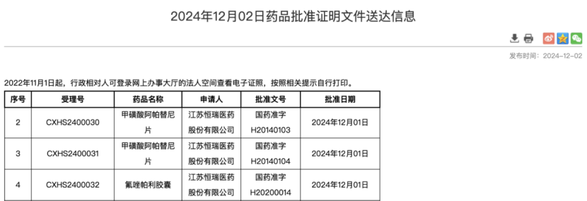 近日,恒瑞医药收到国家药品监督管理局核准签发氟唑帕利胶囊和甲磺酸阿帕替尼片的《药品注册证书》,批准增加适应症:氟唑帕利单药或联合甲磺酸阿帕替尼用于新辅助、辅助或转移阶段接受过化疗治疗的伴有胚系BRCA突变(gBRCAm)的人表皮生长因子受体(HER2)阴性转移性乳腺癌成年患者。激素受体(HR)阳性乳腺癌患者既往需接受过内分泌治疗或被认为不适合接受内分泌治疗。此前该适应症被国家药监局药品审评中心纳入优先审评。