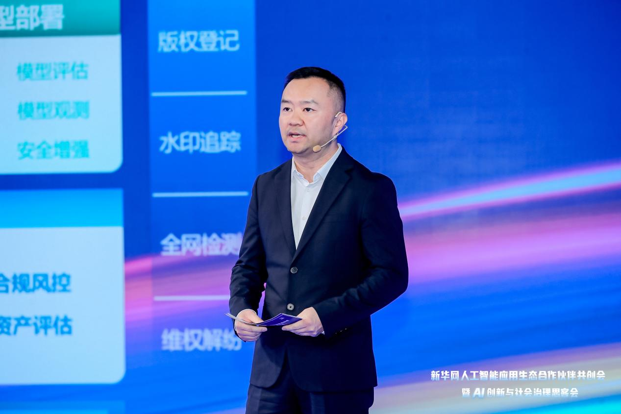 新华网副总裁张芮宁介绍了“新华网人工智能产业创新赋能底座”四大核心能力:“数据要素底座”借助可信数据空间、可信知识联邦,保障数据主权零风险流转,实现跨领域跨组织知识对齐,协同推理提升全产业链数智化效能;“智算统筹底座”高性能弹性算力包模式,为客户提供随需所用的普惠算力;国产开源模型训推一体化云服务,一键开启AI业务赋能;“应用使能底座”提供面向场景的一站式模型及智能体开发平台,助力企业快速搭建场景化应用,并依托新华网信创智算一体机实现安全可信交付;“安全治理底座”践行“以AI守护AI,用大模型对抗大模型”理念,从非公开语料资源版权运营、AIGC内容版权规范治理、大模型内容安全与模型安全管理三方面,提供跨模态语料数据价值观对齐,代码智能审核、模型对抗训练、模型防御蒸馏,提示词防攻击、输出内容安全审核。守护人工智能产业发展行稳致远。