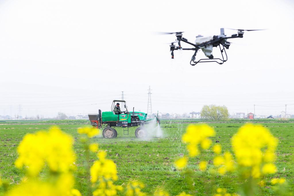 智能农机在田间轰鸣作业、无人机穿梭忙碌、北斗系统精准导航……山乡春耕正插上“科技的翅膀”。