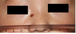 这个小红点学名“化脓性肉芽肿”,又称分叶状毛细血管瘤,是一种皮肤的后天的、良性红色结节状增生。该病多发生于皮肤穿透性外伤或蚊虫叮咬后,常由轻微损伤引起的皮肤黏膜毛细血管和小静脉分叶状增生。在伤口愈合时,新生成的血管形成息肉样的半球形增生性皮损。可迅速生长增大,常伴发溃疡和出血,且时有出血不止、按压不能止血的情况。具有生长迅速、表面易碎的特点。