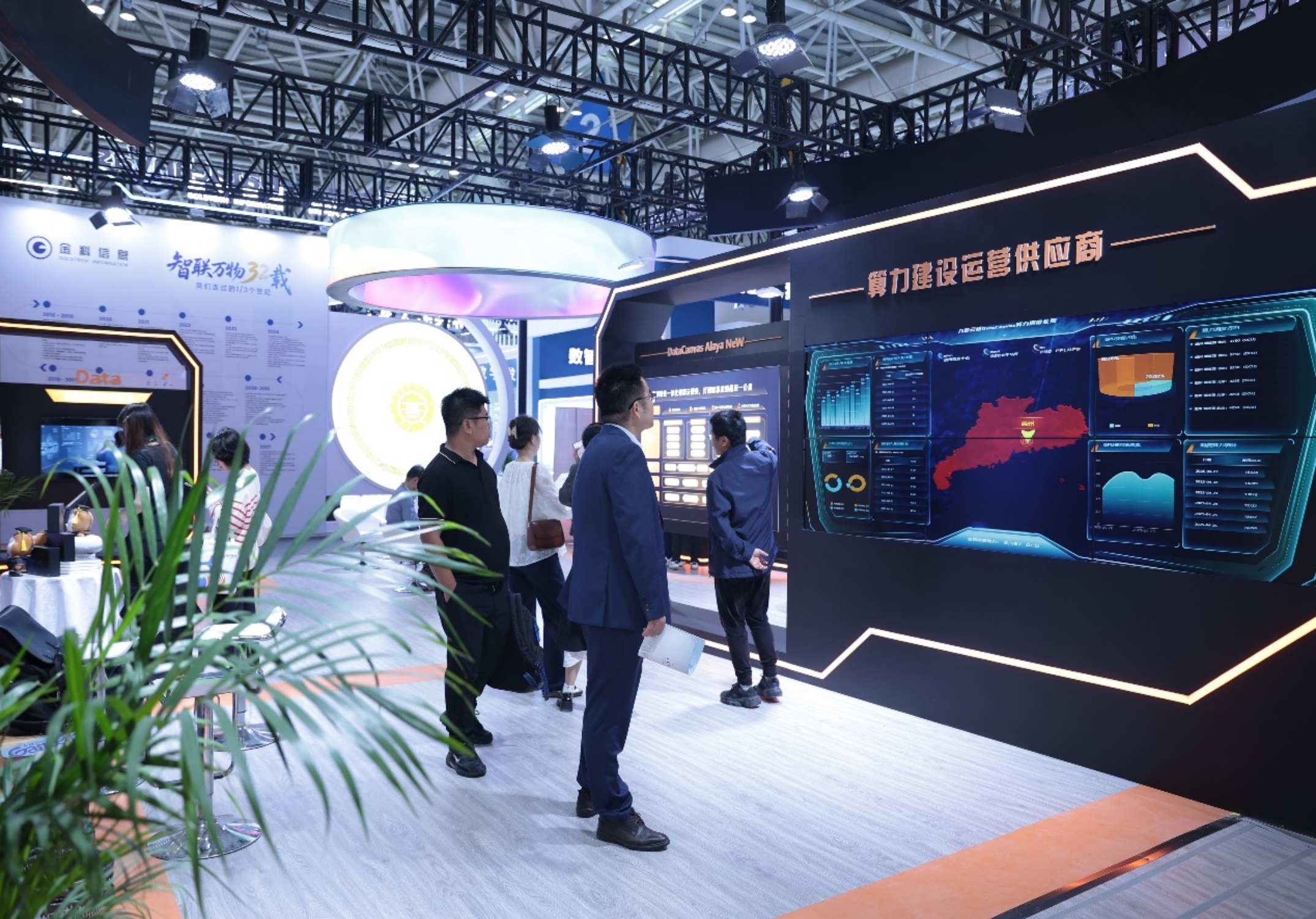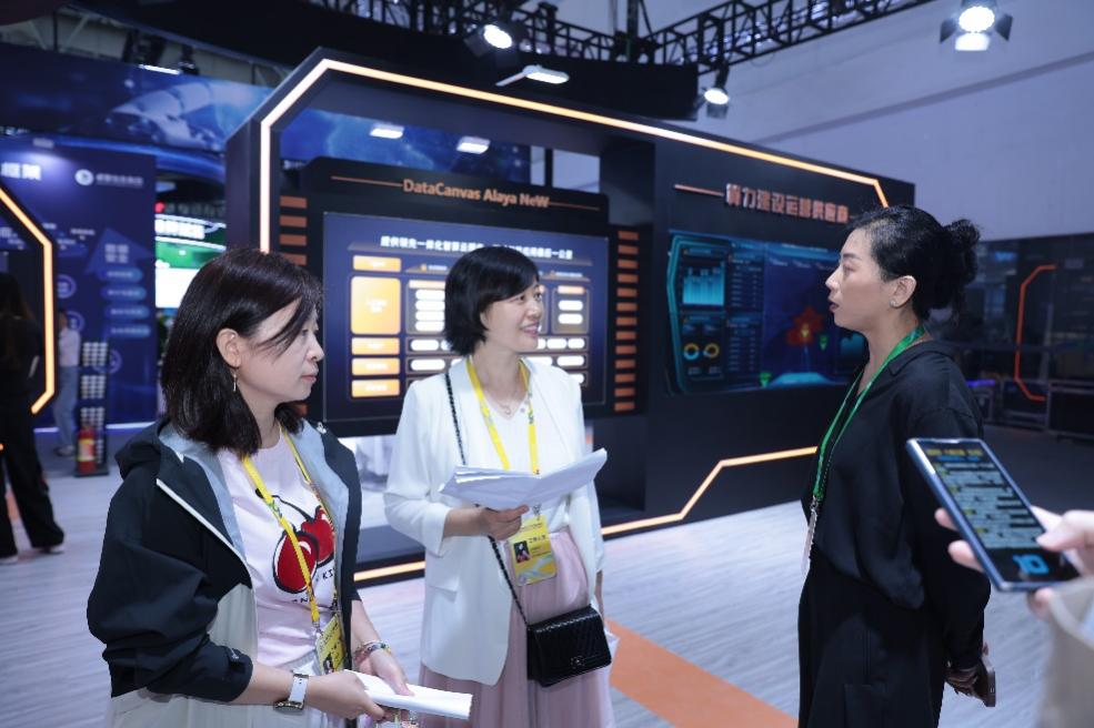 现场专业观众被DataCanvas Alaya NeW智算操作系统算力调度大屏吸引目光
