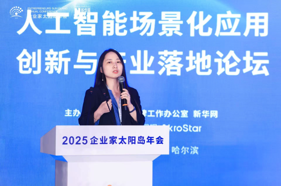 北京银河通用机器人有限公司副总裁赵于莉作主旨演讲。新华网发