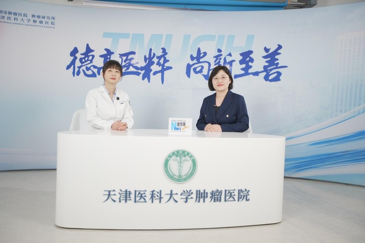 中国抗癌协会肿瘤整形外科专委会主任委员、天津医科大学肿瘤医院乳房再造科主任尹健教授(左一)接受新华网专访
