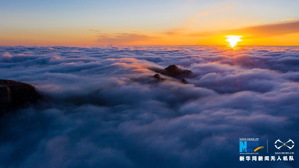 旭日与云海交相辉映,谱写出一首波澜壮阔的秋日晨曲。新华网 发(曹建国 摄)