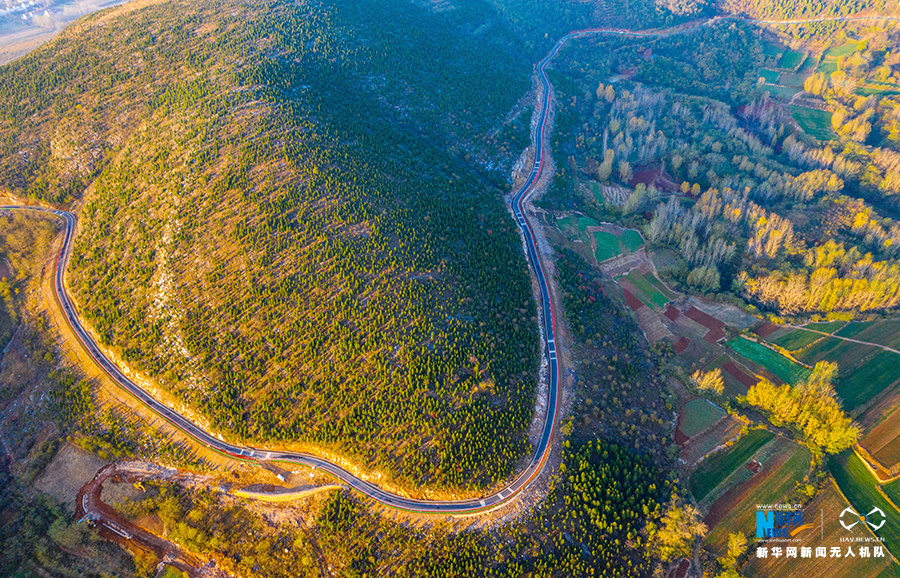 初冬时节,安徽省淮北市烈山区烈山镇雨后初霁,美好乡村在远山、公路、晨光的衬映下如诗如画。近年来,该市积极打造“四好农村路”,让特色农副产品快速出山,观光旅游车快速进山,乡村公路已成为当地群众的致富路、幸福路。新华网发(王文 摄)