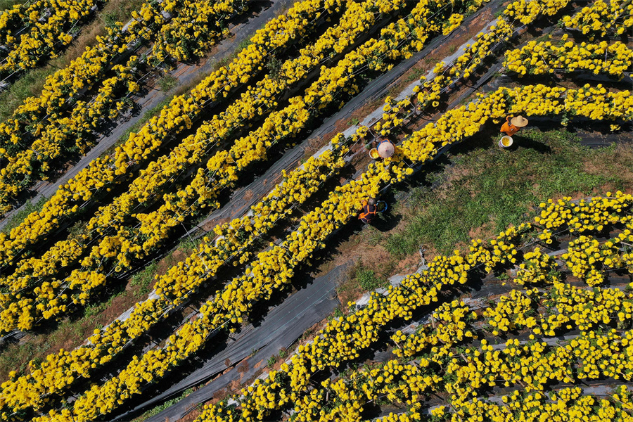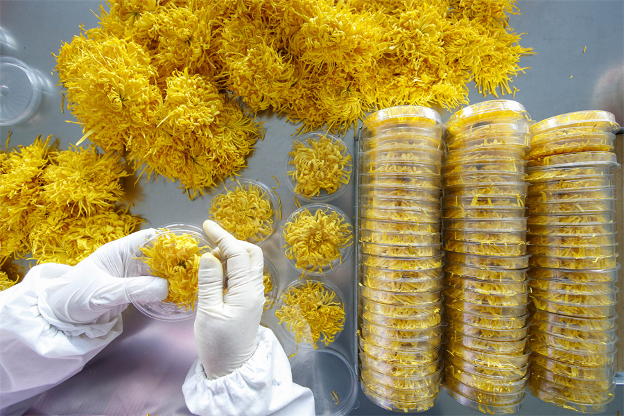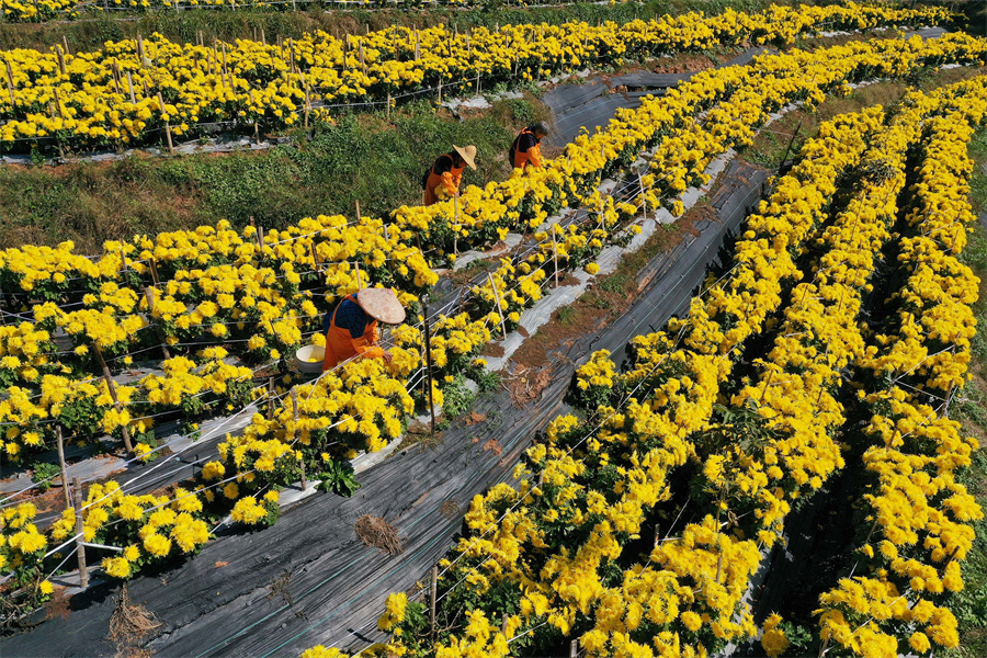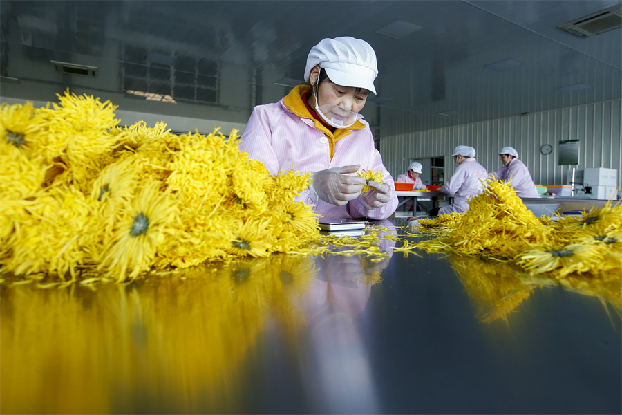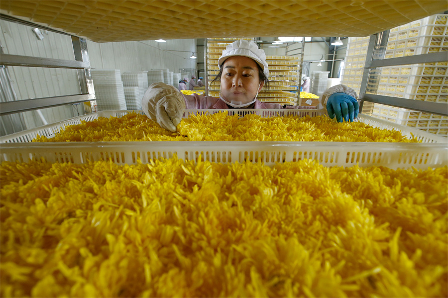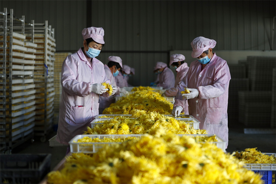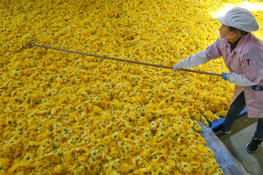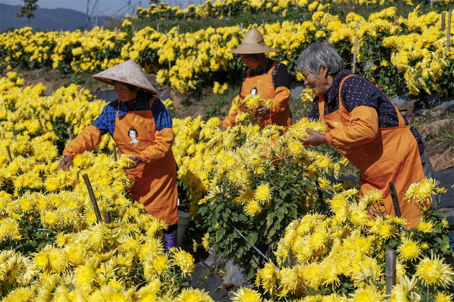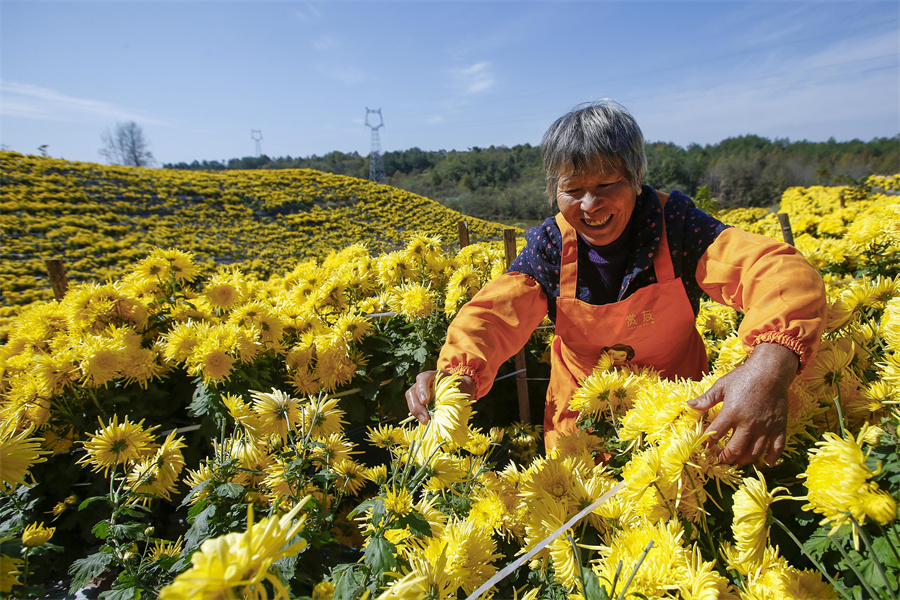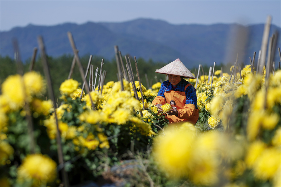 近年来,安徽省黄山市徽州区优化农业产业结构,积极发展菊花经济,菊花种植面积达1400亩,带动1000余户菊农增收,年户均增收6000余元,助推乡村振兴。pagebreak