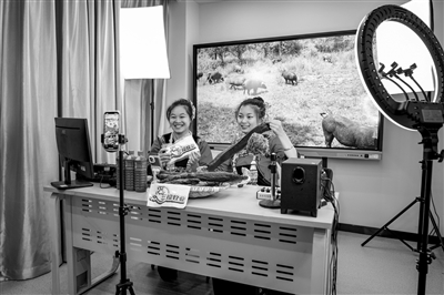 2022年全国高校毕业生基层就业卓越奖获得者杨光珍在直播(右一)