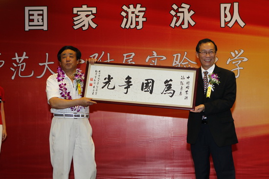 向中国游泳队赠送礼物