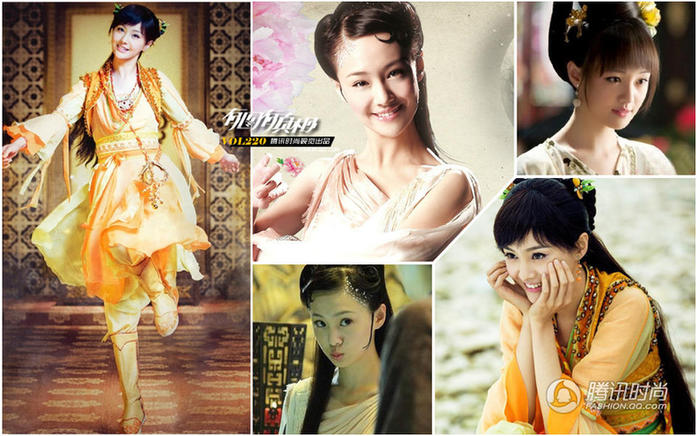 当然,还有近日新闻不断的90后小花旦郑爽,凭借当年的“流星雨”,不到20岁的郑爽一跃成为青年偶像。其实在《画壁》中郑爽的“牡丹”一亮相就已经让不少人在心里暗暗惊叹“这小妮子真是水灵”,《凰图腾》里的刘海造型稍显少女俏皮。再然后,她在《古剑奇谭》中的“小襄”,彼时已经为爱郎整容多了一些妩媚精致,角色中郑爽多以淡黄色与草绿色的服饰为主,简单的盘发配上飘逸的长发,碎发的刘海,纯美秀丽,尽显“小襄”清纯而又机灵的个性。