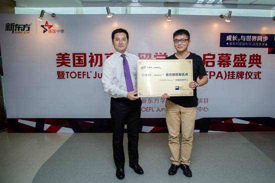 2014年6月28日下午,北京新东方学校美国初高中留学中心开业庆典暨北京新东方学校TOEFL Junior官方合作伙伴授权仪式在北京新东方南楼6层隆重举行。发布会上,北京新东方学校正式获得ETS TOEFL Junior官方授权, 成为北京市首家TOEFL Junior白金级EPA。